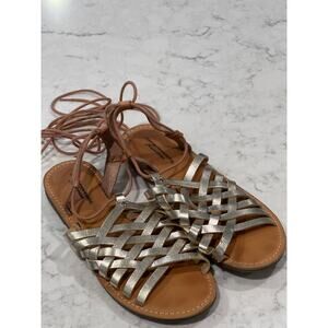 American Eagle Outfitters Women's Leather Gladiator Sandals Metallic Open Toe