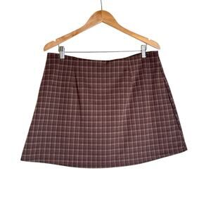American Eagle Outfitters Women's It Knit Plaid Mini Skort Size XL Brown NWT