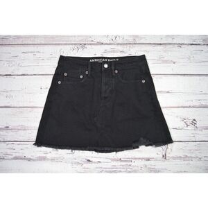 American Eagle Outfitters raw hem skirt for women and juniors. Button closure. Raw hem. Black.
