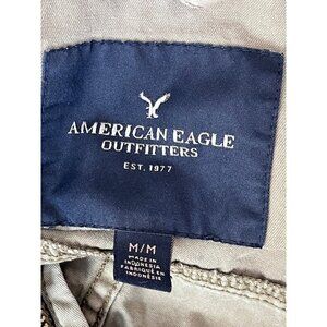 This utility jacket by American Eagle Outfitters offers a stylish olive green design and practical features. Crafted from 100% cotton, it includes a hood and multiple pockets, ensuring both style and functionality. Ideal for casual outings or a day in the city.