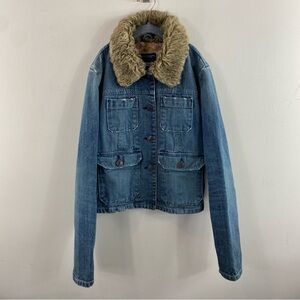 American Eagle Outfitters Women's Penny Lane Jean Jacket Faux Fur Collar Sz XS
