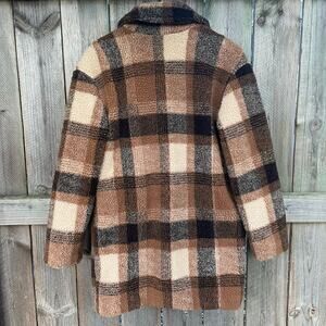 American Eagle Outfitters Women's Plaid Oversized Teddy Jacket Brown Size XS