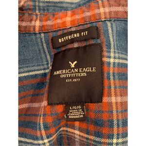 American Eagle Outfitters Women's Red & Blue Plaid Print Boyfriend Fit Button-Down Shirt Size L