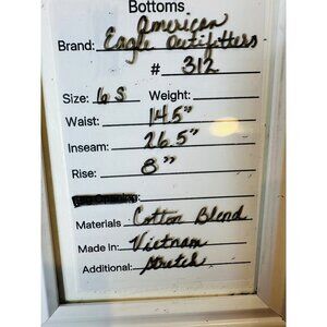 Waist = 14.5 inches, Inseam = 26.5 inches, Rise = 8 inches