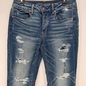 American Eagle Outfitters Women's Tomgirl Jeans Distressed Medium Wash Size 10
