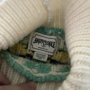This American Eagle Outfitters Women's XS Cream Blue Fair Isle Knit Sweater Oversized is a stylish and versatile piece perfect for various occasions such as travel, casual outings, and workwear. Green, ivory, yellow! Super cute piece!