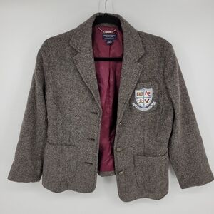 American Eagle Outfitters Womens Y2K Grey Tweed Blazer Wool Blend Size M