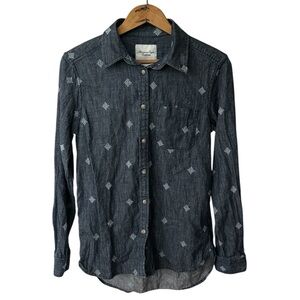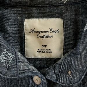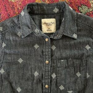 🔥American Eagle Outfitters | Women’s blue chambray embroidered button down shirt
