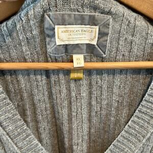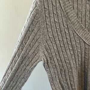 American Eagle Outfitters XL Wool-Angora Blend Gray V-Neck Cable Knit Sweater