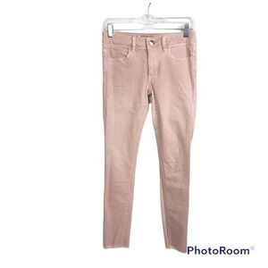 American Eagle Outfitters jeggings crop pants. Pale millennial pink color. Super super stretch. Raw hem. Button and zip fly closure.