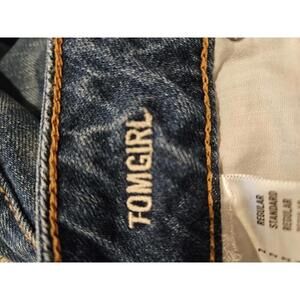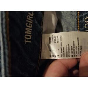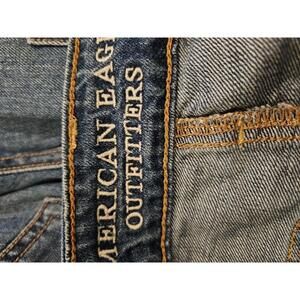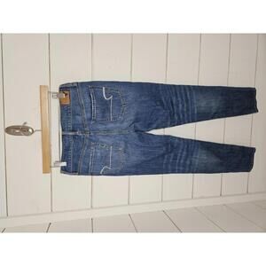 American Eagle Outfitters size 2 blue denim distressed & patched tomgirl jeans
