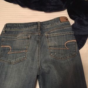 they stretch, are "washed out" style. length is 39 inches, hip is 15 inches (across the front). Barely worn, someone bought them for me as a present but I don't wear jeans often. Has no flaws. Please let me know if you want any other pics (-: