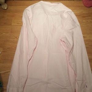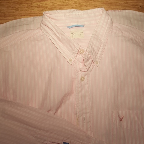 Mens pale baby pink & white stripe long sleeve shirt by american eagle outfitters