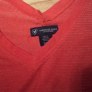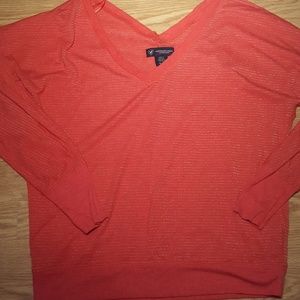 Orange color with silver stripes, size Small by american eagle, long sleeve, v neck in front & back