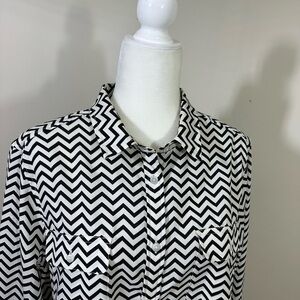 American Eagle Outfitters sz XL top, blouse, shirt in blk/white zigzag design