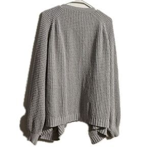 This gray cardigan from American Eagle Outfitters features a chunky ribbed knit texture and an open-front design, perfect for a relaxed and cozy fit. The elbow-length sleeves and hip-length cut make it an ideal layering piece for any casual occasion.