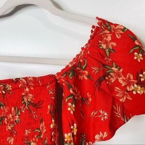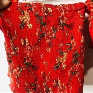 American Eagle Outfitters Red Boho Floral Crop Top Milkmaid NWT!