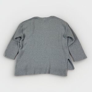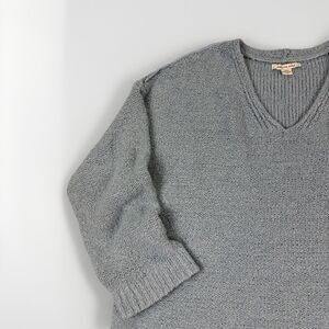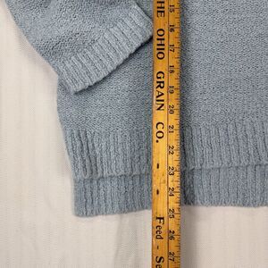 This American Eagle Oversize Slouchy Sweater in light blue is a stylish and comfortable option for the colder seasons. The V-neck design, 3/4 sleeves, and oversized fit make it perfect for a casual, relaxed look. Made from a blend of polyester and acrylic, this chunky-knit sweater is easy to care for with its machine washable fabric. Whether you're running errands, traveling, or working, this sweater can be dressed up or down for any occasion. Perfect for adding a pop of color to your wardrobe, this sweater is a versatile and trendy choice for any fashion-forward woman.