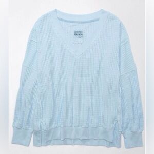 American Eagle Oversized Big Hug V-Neck Waffle Blue Sweatshirt S NWT