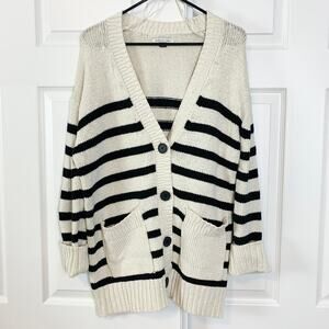 American Eagle Oversized Button-Front Long-Length Cardigan Sweater Stripe Small