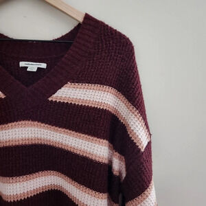 American Eagle | Oversized Dreamspun V-Neck Striped Knit Sweater - Size M