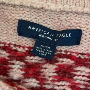 American Eagle Oversized Fair Isle Sweater | Blush Pink Burgundy Nordic Knit M