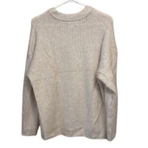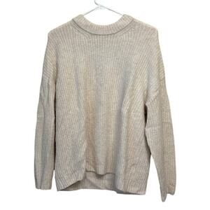 American Eagle Oversized Fit Crew Neck Pullover Sweater Cable Knit Beige Size XS