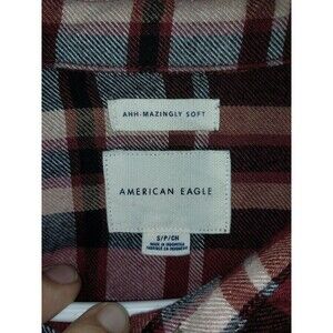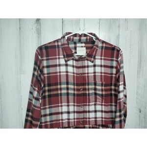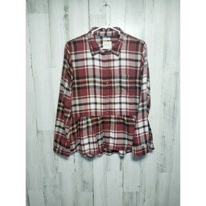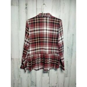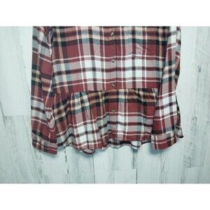 American Eagle Oversized Flannel Peplum Burgundy Plaid Top Small Soft