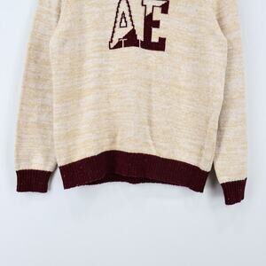 American Eagle Oversized Knit AE Logo Sweater Size M/L Ivory Maroon NWOT