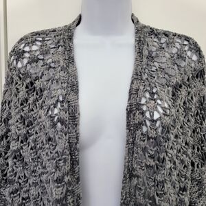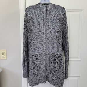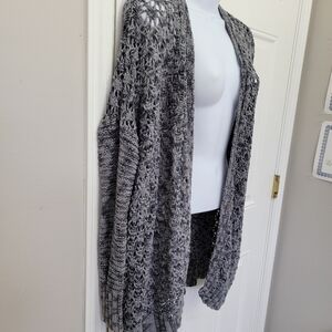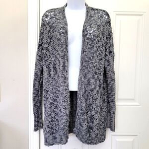 American Eagle Oversized Loose Knit Crochet Open Cardigan Sweater Marled Gray M