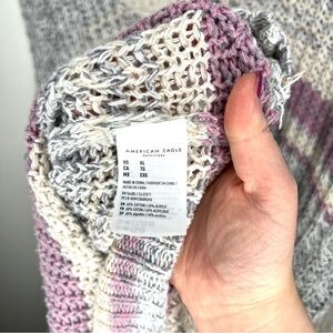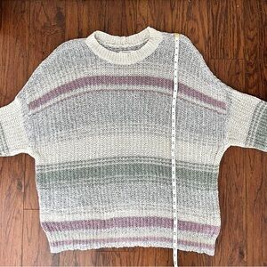 American Eagle Oversized Slouchy Knit Stripe Purple Blue Crewneck Sweater XL