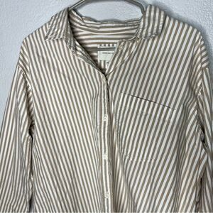 American Eagle Oversized Perfect Button-Up White/Gray Women’s Blouse Shirt Sz S
