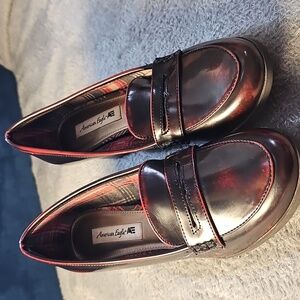 American Eagle Oxblood Patent Chunky Heel Loafers Size 6 Y2k Vintage Red Black