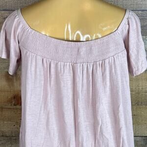 American Eagle Top. Size small. Color ~ Pale pink. Flutter sleeves. Smocked neck. Lace up neck line. Split raw hem. Excellent condition. Measurements are in the pictures.