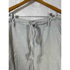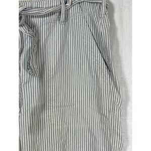 American Eagle Pants 14 Cream Blue Striped Belted Cotton Pockets