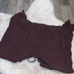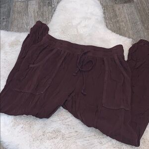 Super light tapered pants from American Eagle. Inseam is approximately 23 inches. Size small. Used but excellent condition. Color is between a deep purple and brown