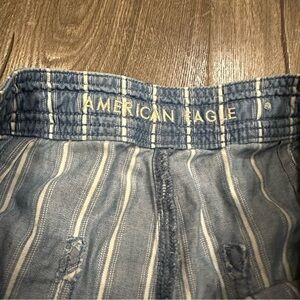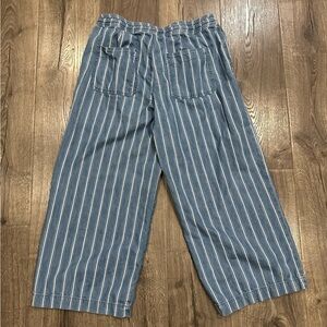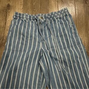American Eagle Pants High Rise Wide Leg Crop Striped Blue White Women’s 8 Beach
