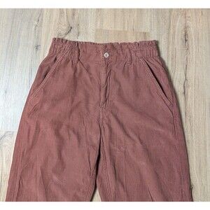 American Eagle Pants Size 6 Corduroy Paperbag Straight Leg Elastic Waist Brown