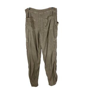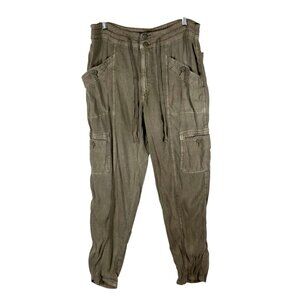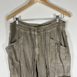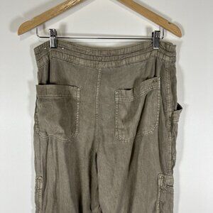 American Eagle Pants Women 12 US XL green Linen Blend Cargo Pockets Drawstring