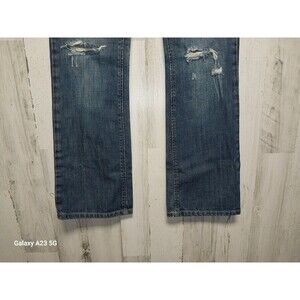 Rise 8.5 inches, waist 31 inches, inseam 32 inches. Holes and distressing as shown in photos. Inventory #404