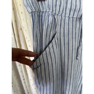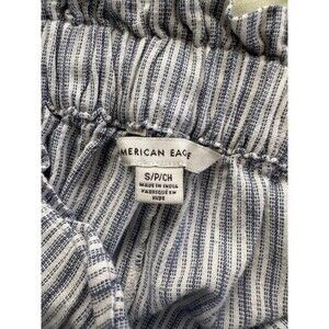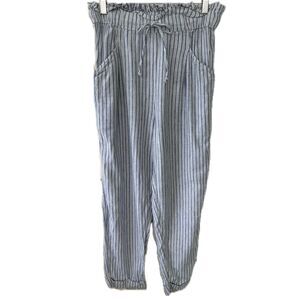 American Eagle Paper Bag Drawstring Linen Blend Striped Cuff Beach Pants S