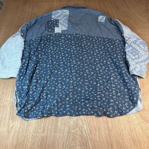 American Eagle Patchwork Chambray Shirt L Blue Mixed Print Boho Soft Cotton