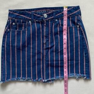 American Eagle Patriotic High Rise Raw Hem Mini Denim Skirt Size 6 Long