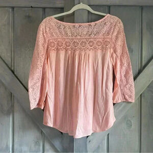 American Eagle- Peach peasant Lace Blouse 3/4 sleeves soft girl boho