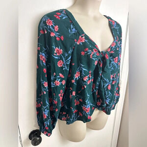 American Eagle Peasant Floral Tie Knot Blouse XXL #1425