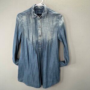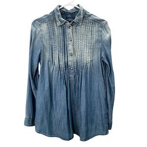 American Eagle Peasant Popover Top Chambray Denim XS Pullover Long Sleeve Blue