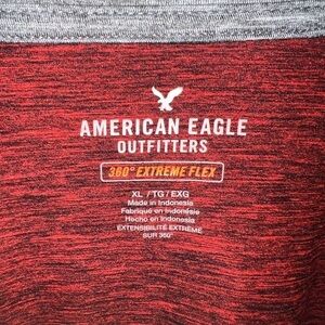 American Eagle Performance Top XL Long Sleeves Logo Tee Stretch Smooth Red Grey