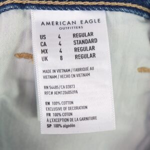 American Eagle Pin Stripe Blue Mom Jean High Rise Tapered Leg Size 4