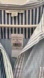 Blue and white stripes. Has pockets in skirt portion of the dress