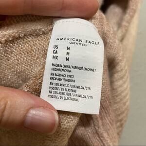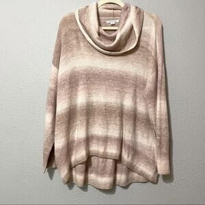American Eagle Pink Cream Striped Cowl Neck Super Soft Sweater Women M Oversized